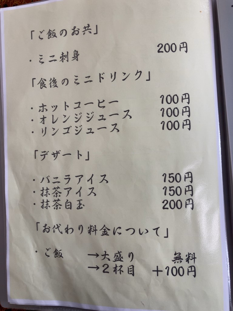 鮭のみそ焼き、焼きナスの山かけ、お刺身等が